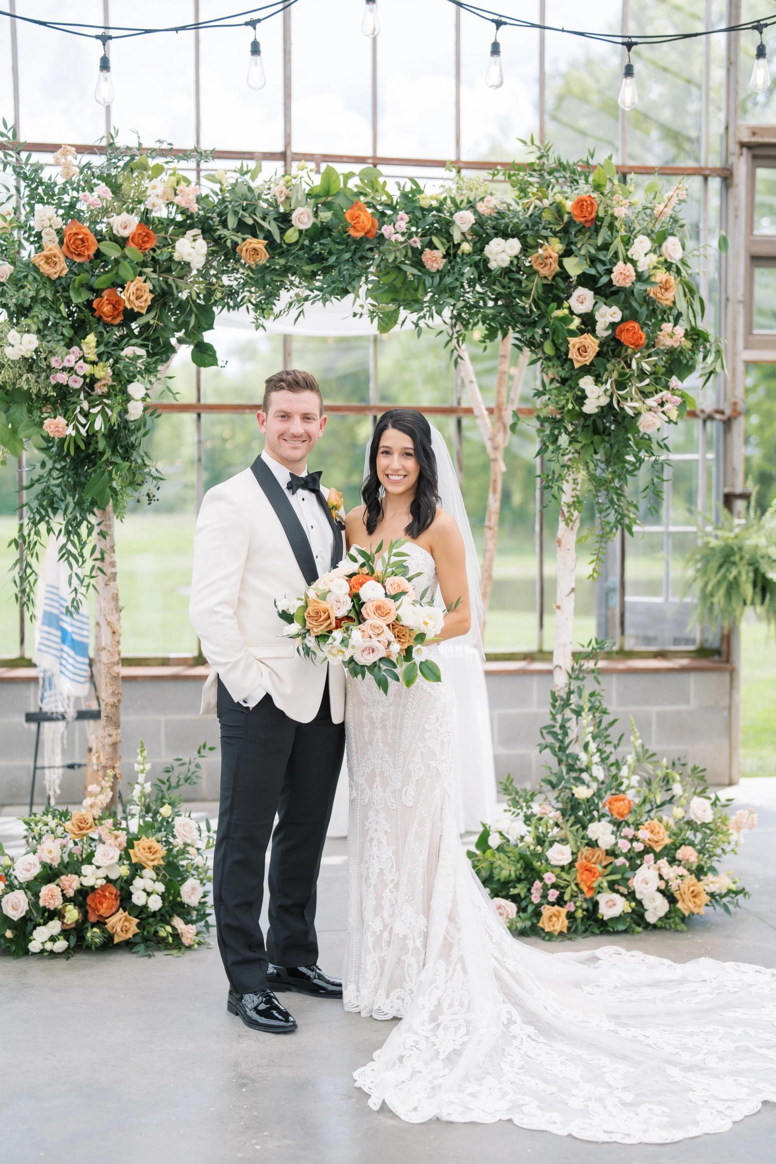 Under creative direction of Courtney with Rooted Together Events, we had the blessing of being able to design for this darling couple who joined hands in marriage in the greenhouse setting of Jorgensen Farms Oak Grove in the Spring of 2022. Photography is by the ever-talented and generous Alison of Kismet Photography. We loved the unique color pallet that our bride and planner, Courtney Heibel chose for the event. A pop of orange was a welcome sight amidst the other sweet caramel neutrals and blush tones.